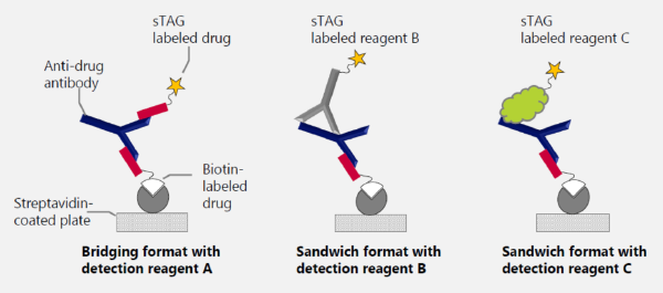 图1 不同检测抗药物抗体免疫学平台原理